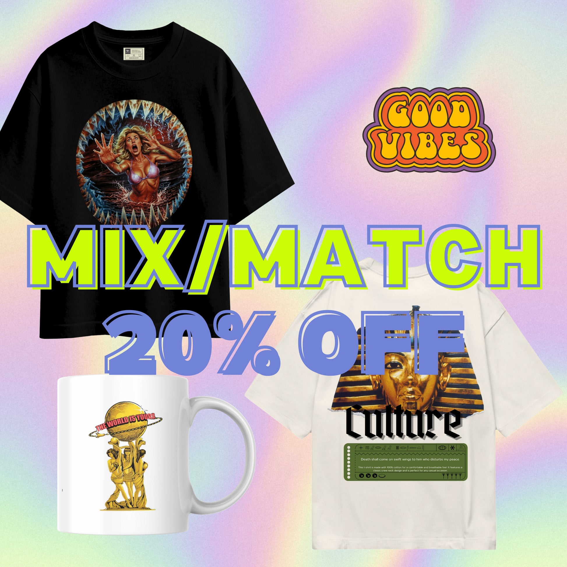 Why grab just one when you can have it all? Snag our exclusive bundle featuring 2 premium graphic T-shirts, 1 bold ceramic mug, and a matching sticker all in one pack.